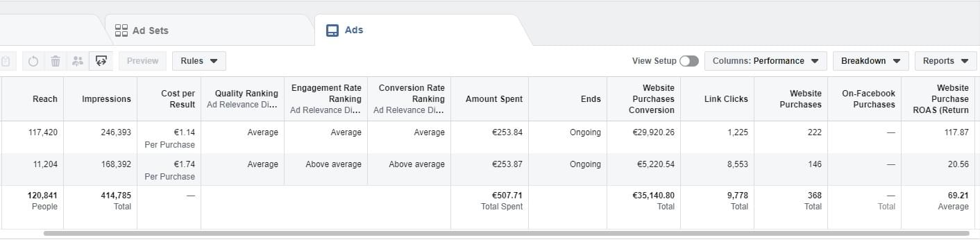 Επιστροφή επένδυσης σε πάνω από 35.140€ ανά μήνα με ROAS 69,21X
