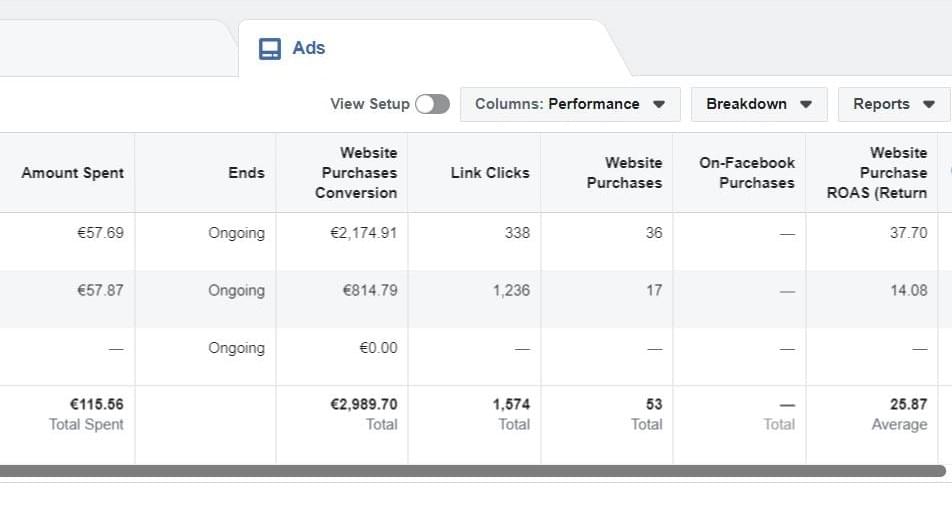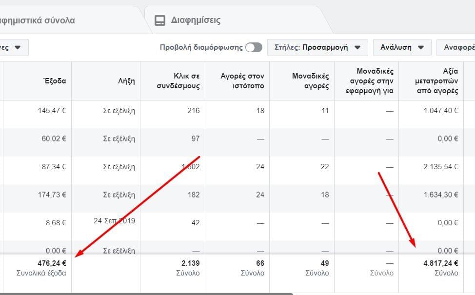 Επιστροφή επένδυσης σε πάνω από 2.900€ με ROAS 25,87X