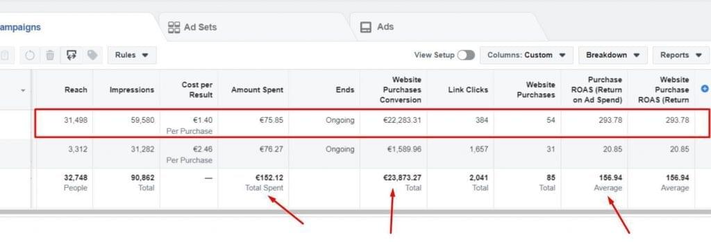 Επιστροφή επένδυσης σε πάνω από 23.800€ με ROAS 156,94X