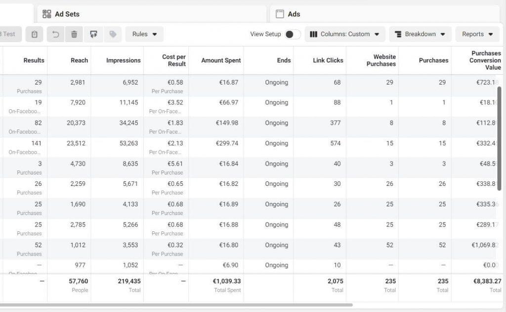 Επιστροφή επένδυσης σε πάνω από 7.400€ ανά μήνα με ROAS 57,93X